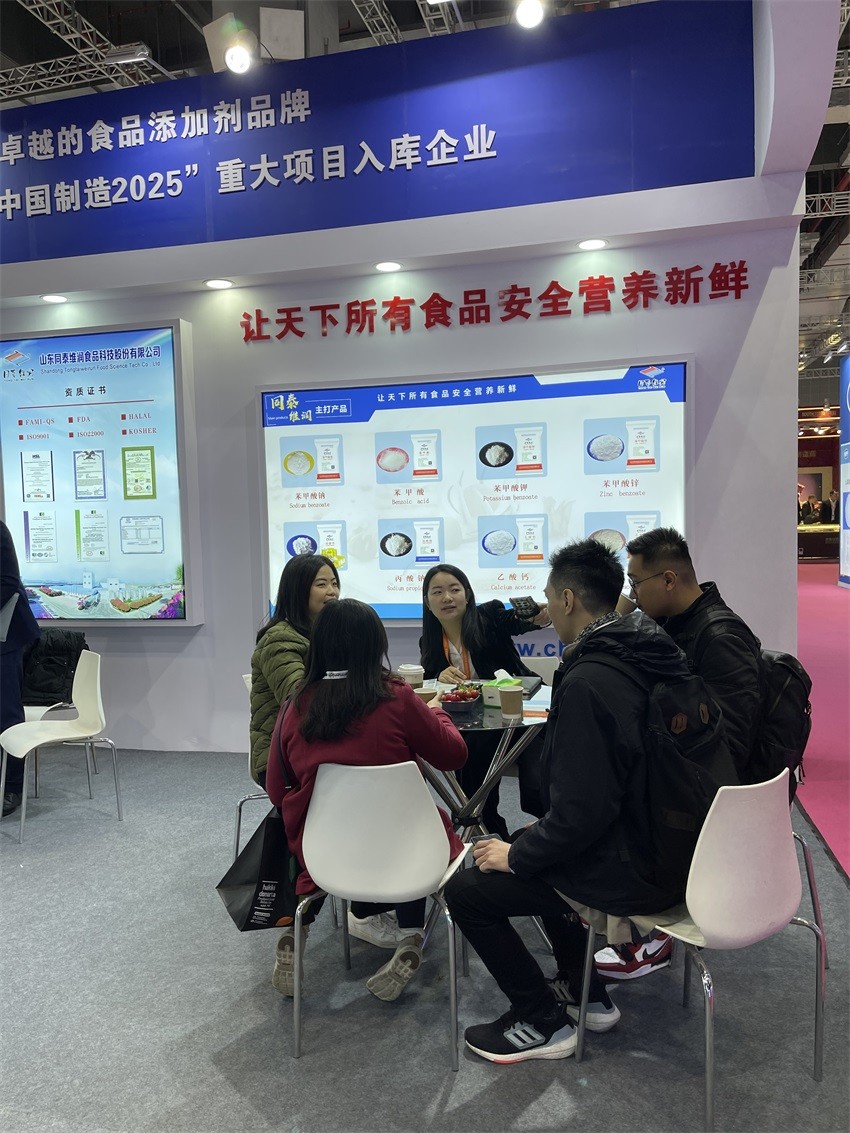 FIC盛會(huì)開展首日, 展廳內(nèi)人頭攢動(dòng)、十分熱鬧,同泰維潤(rùn)攜主打產(chǎn)品苯甲酸鈉、苯甲酸、丙酸鈣、丙酸鈉、乙酸鈣、乙酸鈉等多款產(chǎn)品亮相此次展會(huì),眾多新老客戶及國(guó)外友人到我公司展區(qū)洽談咨詢。對(duì)客戶提出的產(chǎn)品應(yīng)用與問題進(jìn)行全方位的解答,專業(yè)的團(tuán)隊(duì)為客戶提供更加專業(yè)的解決方案!